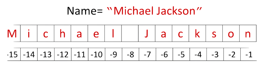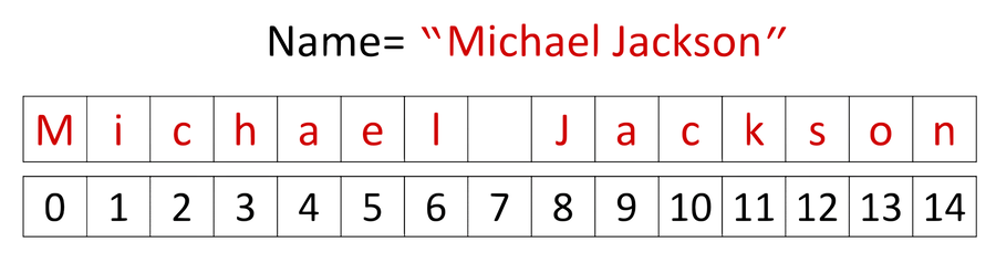 ยกตัวอย่าง “Michael Jackson” เป็นสตริงที่มีตัวอักษรทั้งหมด 11 ตัวอักษร