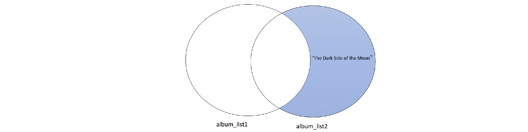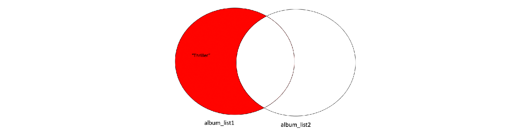 ผลลัพธ์ที่ได้คือ สมาชิกทุกตัวที่มีอยู่เฉพาะใน album_set1 เท่านั้น แสดงได้ดังรูปต่อไปนี้
